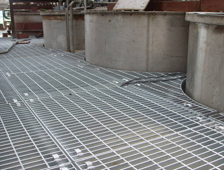 污水廠用鋼格板 污水處理廠用鋼格柵其特點為: 1、強度高:牢固的網(wǎng)格壓焊結(jié)構(gòu)使其具有高承載; 2、結(jié)構(gòu)輕:便于吊裝等特點; 3、外形美觀,經(jīng)久耐用:熱浸鋅表面處理使其具有相當(dāng)好的防腐能力,表面光澤美觀; ···